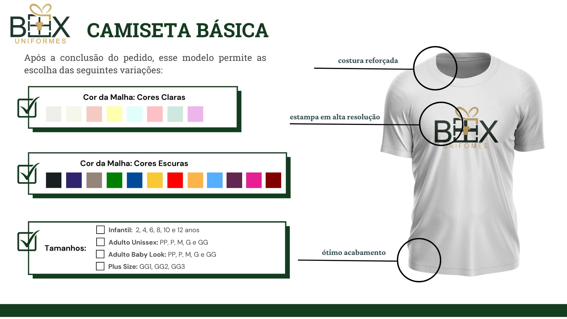 Na Box Uniformes, somos especializados em criar uniformes personalizados que refletem a identidade e os valores de sua marca. Com uma combinação perfeita de qualidade, estilo e conforto, nossos uniformes são desenvolvidos para atender às necessidades de diversos setores, desde empresas até instituições educacionais.